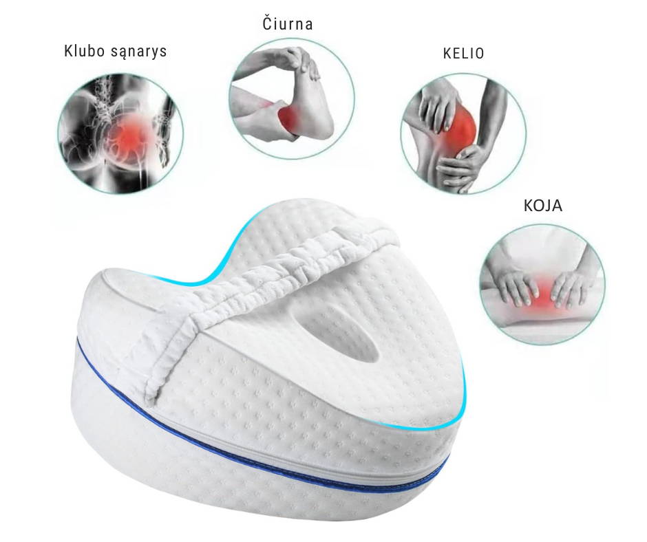Tiesiog padėkite pagalvėlę tarp kelių arba po keliais, miegodami ant šono arba nugaros, kad užtikrintumėte optimalų atramą ir sumažintumėte skausmą.